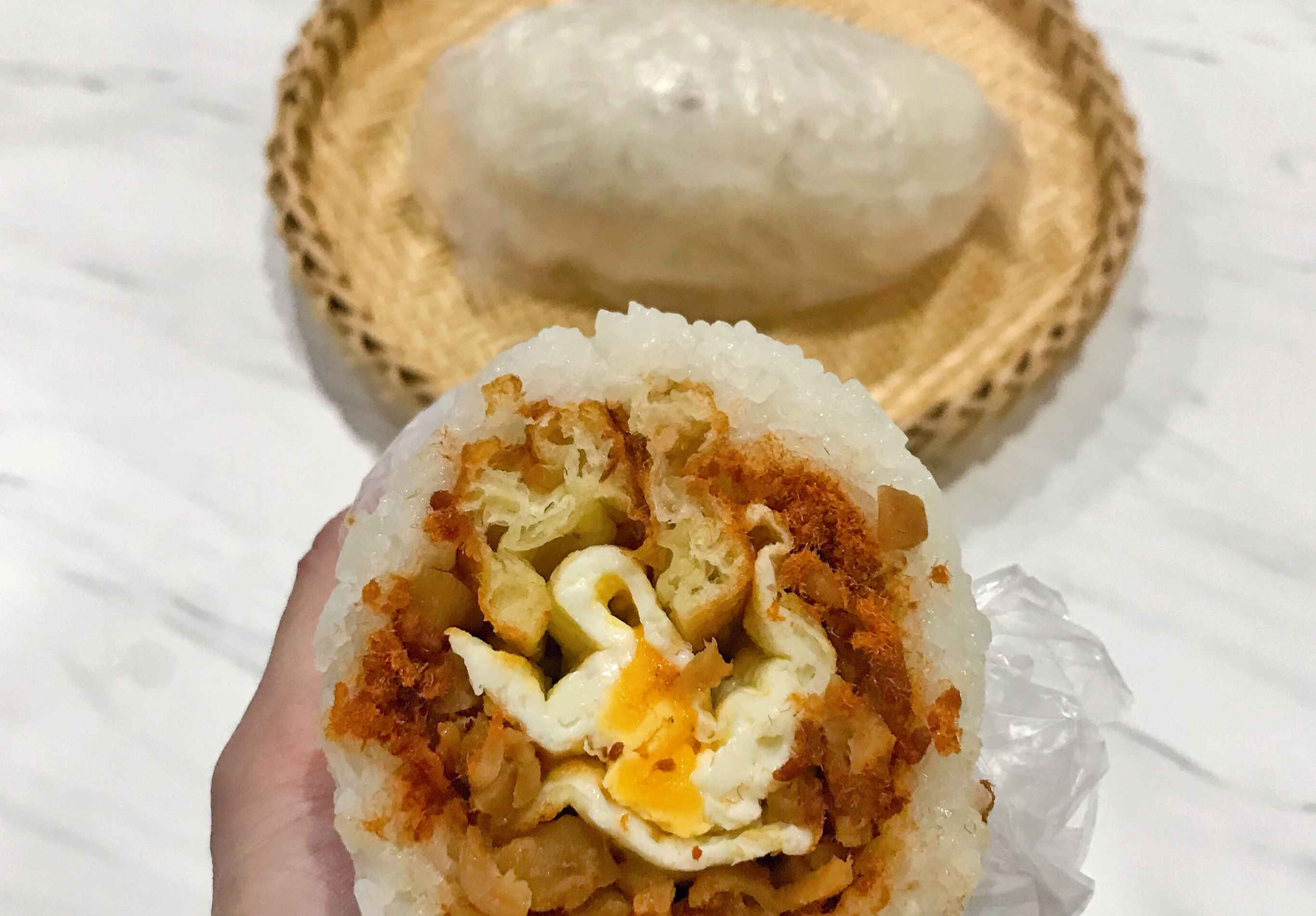 쌀밥에 요우티아오, 절인 채소, 계란 등을 넣어 만든 주먹밥입니다.