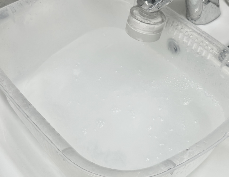 누런 때가 없어진 것을 확인했다면, 미지근한 물 또는 찬물로 헹궈주세요.